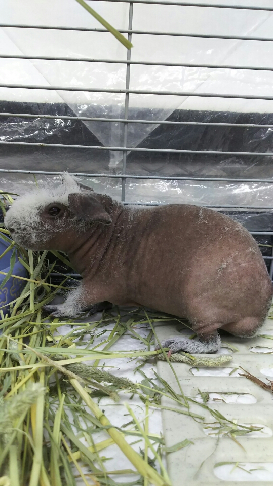 ちなみに写真の彼は割と毛の多い方の、毛がないモルモットです。