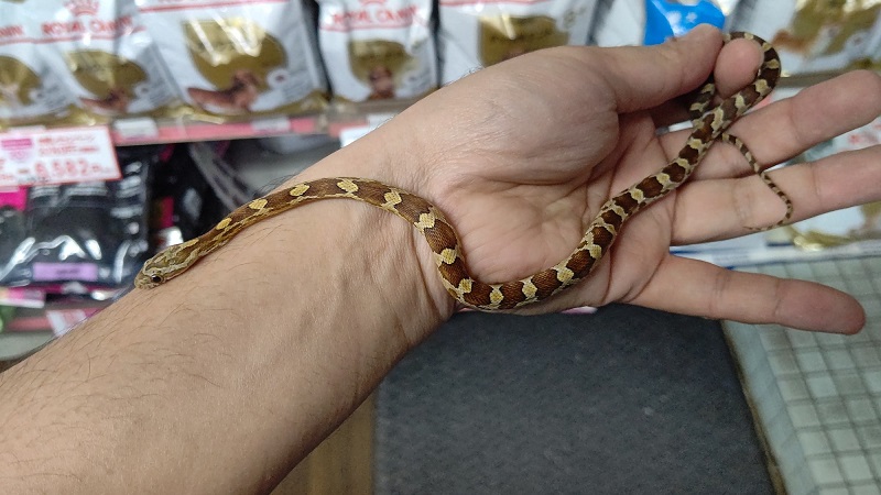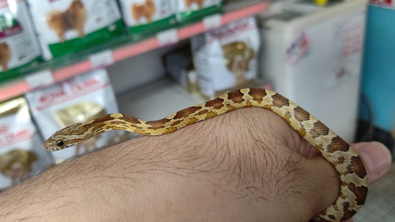 何とも香ばしそうな色のコーンスネークさんです。