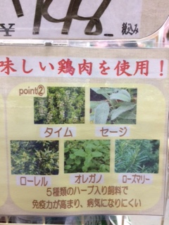 鶏たちは、毎日5種類のハーブが入った餌を食べることで