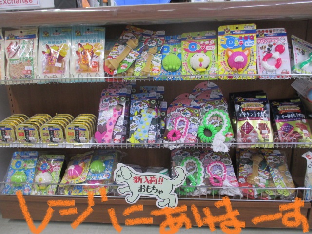 ワンちゃんのオモチャを始め、新商品はレジの前にずらずら~