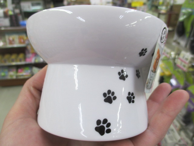 比較的、食道がまっすぐという身体的特徴がある猫様のために、頭を下げずとも食べられるように作られてます。