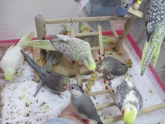 やたら馴れ馴れしい桜文鳥さんもいます。ジャンボセキセイさんもいます。