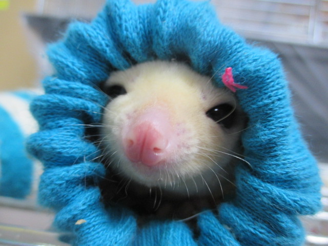 スタッフのポッケには白きモモンガ様。