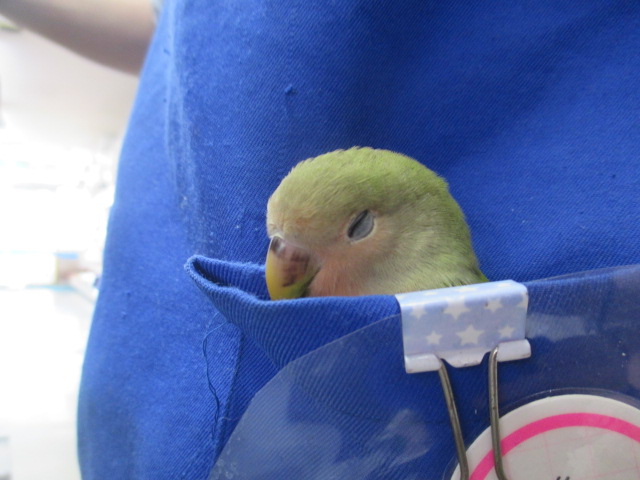 小桜インコ「ザックちゃん」はポッケでお休みしてます。