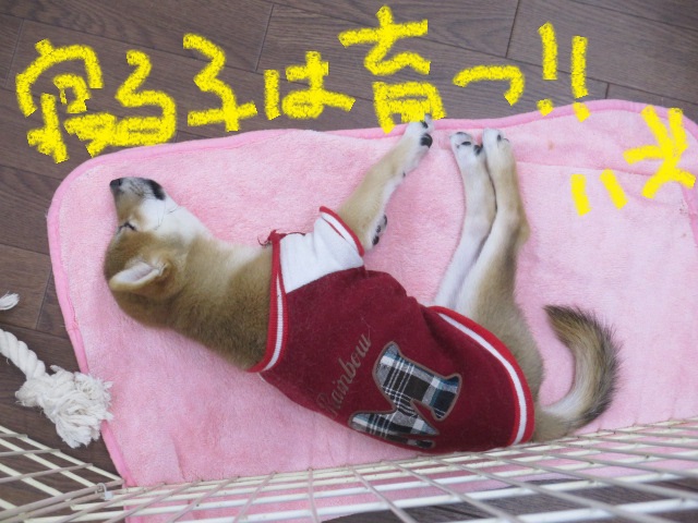 サークルでは柴くんが遊んではしゃいで、疲れて寝てます