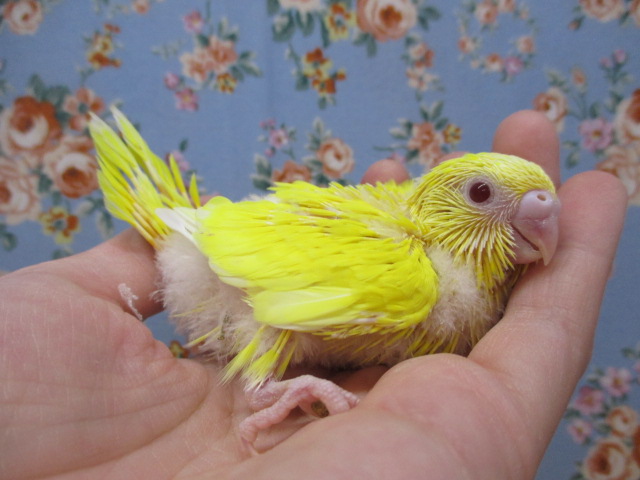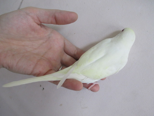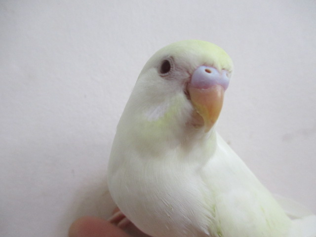 通常のルチノーのように全身が黄色ではなく、顔周りや翼、尾羽あたりにうっすらクリーム色が乗ってます。