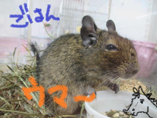 小さいデグーさんもいますが、マカロンちゃんはもう立派な大人のデグーさん。