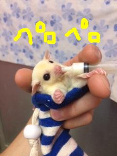 真っ白いフクロモモンガのベビーが、