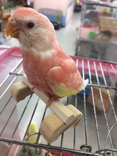 新しく来たアキクサインコのルビノーちゃん。いますよ!!