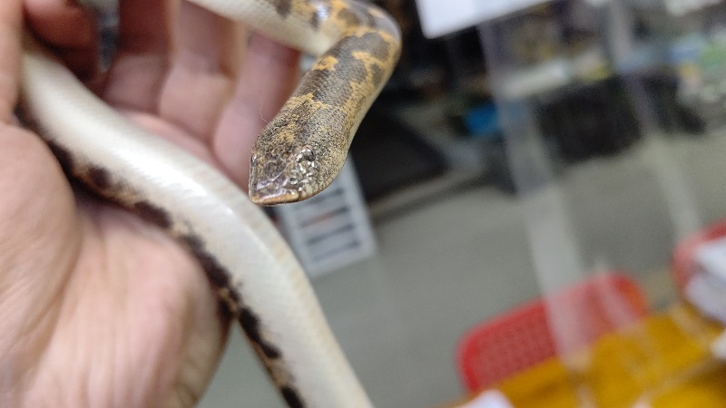 サンドボアというだけあって砂地や柔らかい土の中にいる種類なんですが、