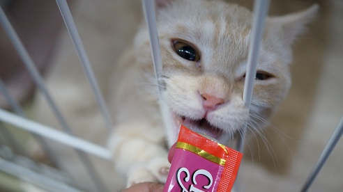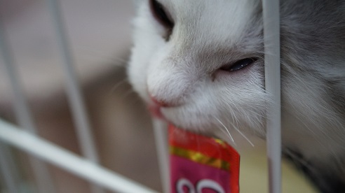 ※この状態であげているわけではなく、おやつを引き抜くときに撮影したものです。