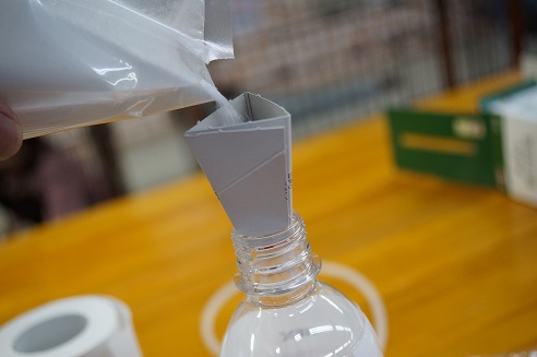 白い粉末をボトルに投入し、その後にあったか~いお湯を注ぎます。
