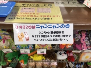 柏店では、ニャンニャンの日に限り、