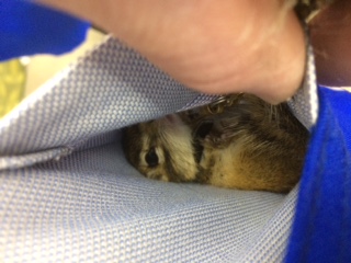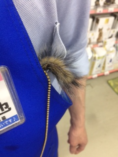 T店長の胸ポケットにシマリスちゃんが住み着きました。