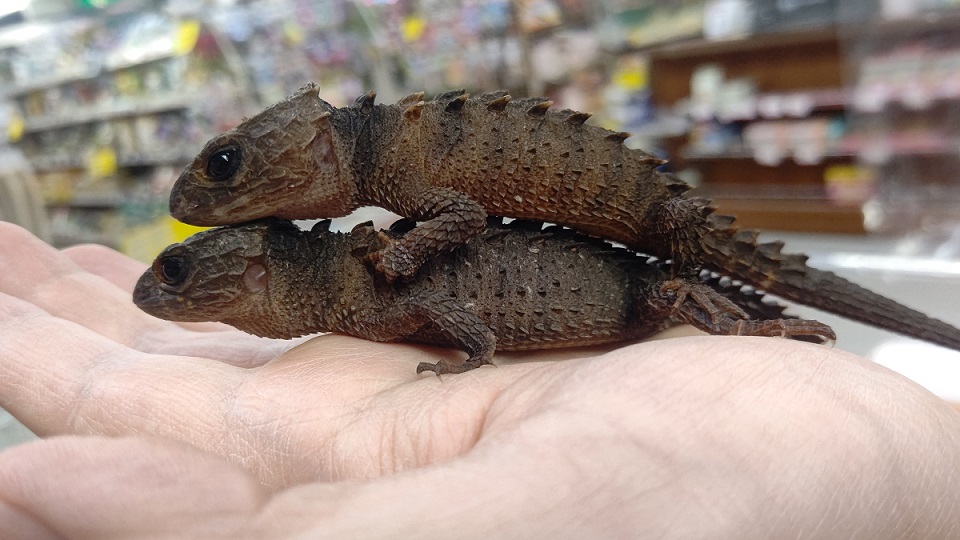 体色も茶褐色気味の個体が多く、背中の突起も赤目より鋭利です。